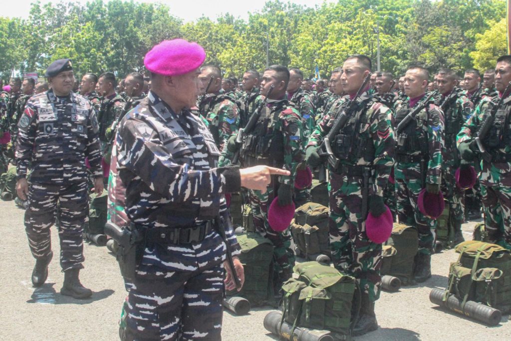 Berita Komando (Sidoarjo). Kepala Staf Korps Marinir (Kas Kormar) Brigadir Jenderal TNI (Mar) Muhammad Nadir, M.Tr.Opsla., mewakili Panglima Korps Marinir (Pangkormar) Letnan Jenderal TNI (Mar) Dr. Endi Supardi, S.E., M.M., M.Tr.Opsla., CHRMP., CRMP., pimpin Apel Gelar Riksiaplat Korps Marinir dan Apel Kesiapan Pasukan upacara Pasmar 2 dalam rangka HUT ke-80 TNI Tahun 2025 di Lapangan Apel Brigif 2 Marinir, Gedangan, Sidoarjo, pada Senin (15/09/2025).