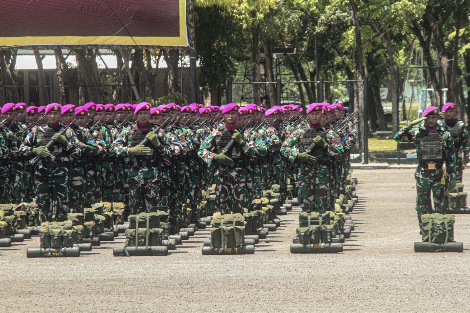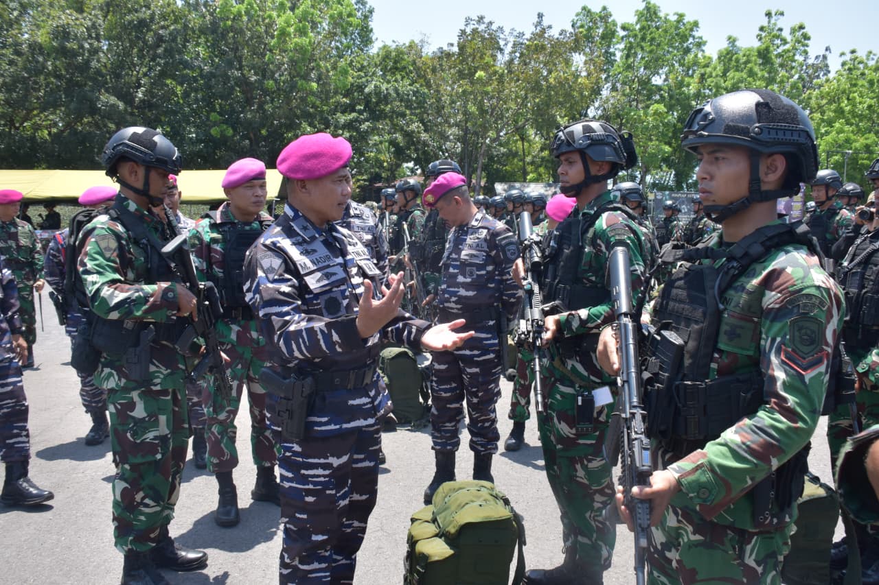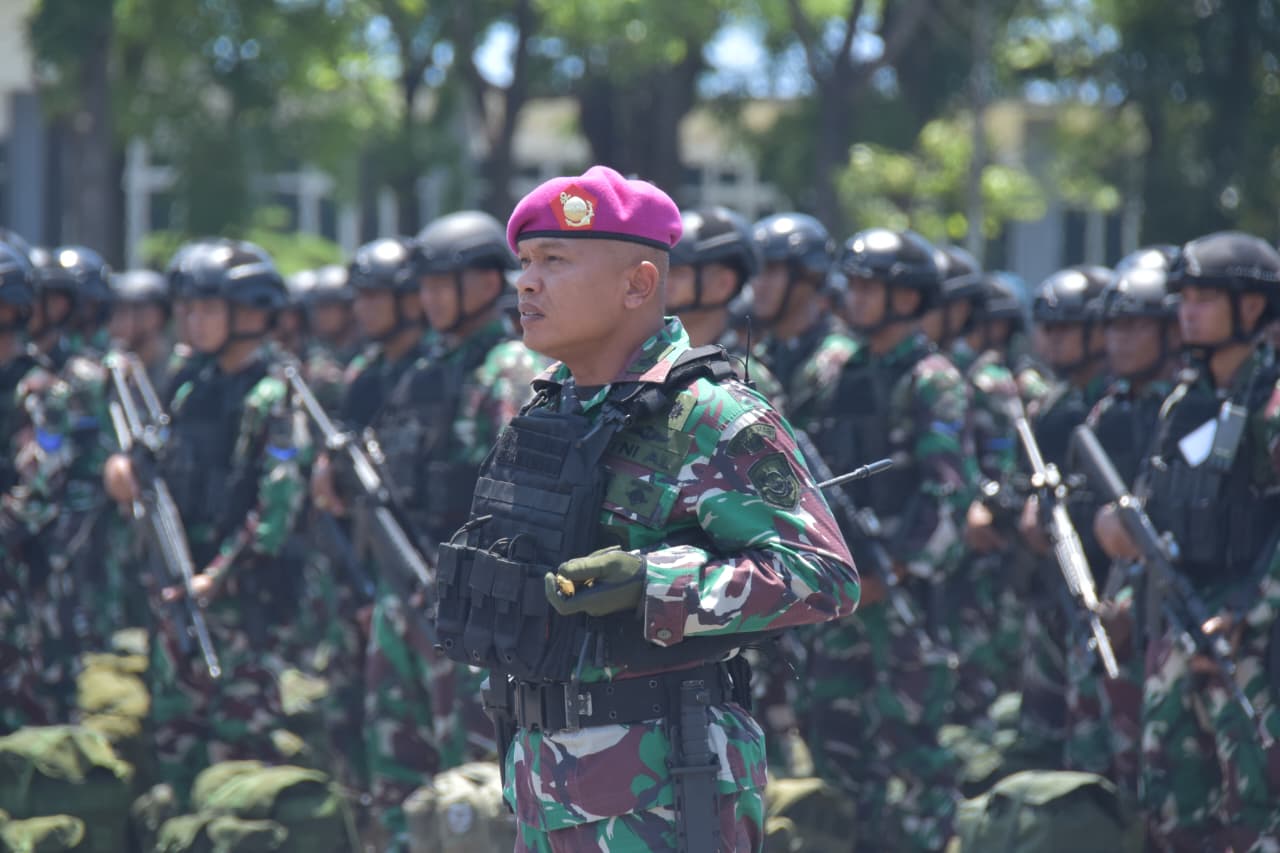 Berita Komando (Sidoarjo). Kepala Staf Korps Marinir (Kas Kormar) Brigadir Jenderal TNI (Mar) Muhammad Nadir, M.Tr.Opsla., mewakili Panglima Korps Marinir (Pangkormar) Letnan Jenderal TNI (Mar) Dr. Endi Supardi, S.E., M.M., M.Tr.Opsla., CHRMP., CRMP., pimpin Apel Gelar Riksiaplat Korps Marinir dan Apel Kesiapan Pasukan upacara Pasmar 2 dalam rangka HUT ke-80 TNI Tahun 2025 di Lapangan Apel Brigif 2 Marinir, Gedangan, Sidoarjo, pada Senin (15/09/2025).