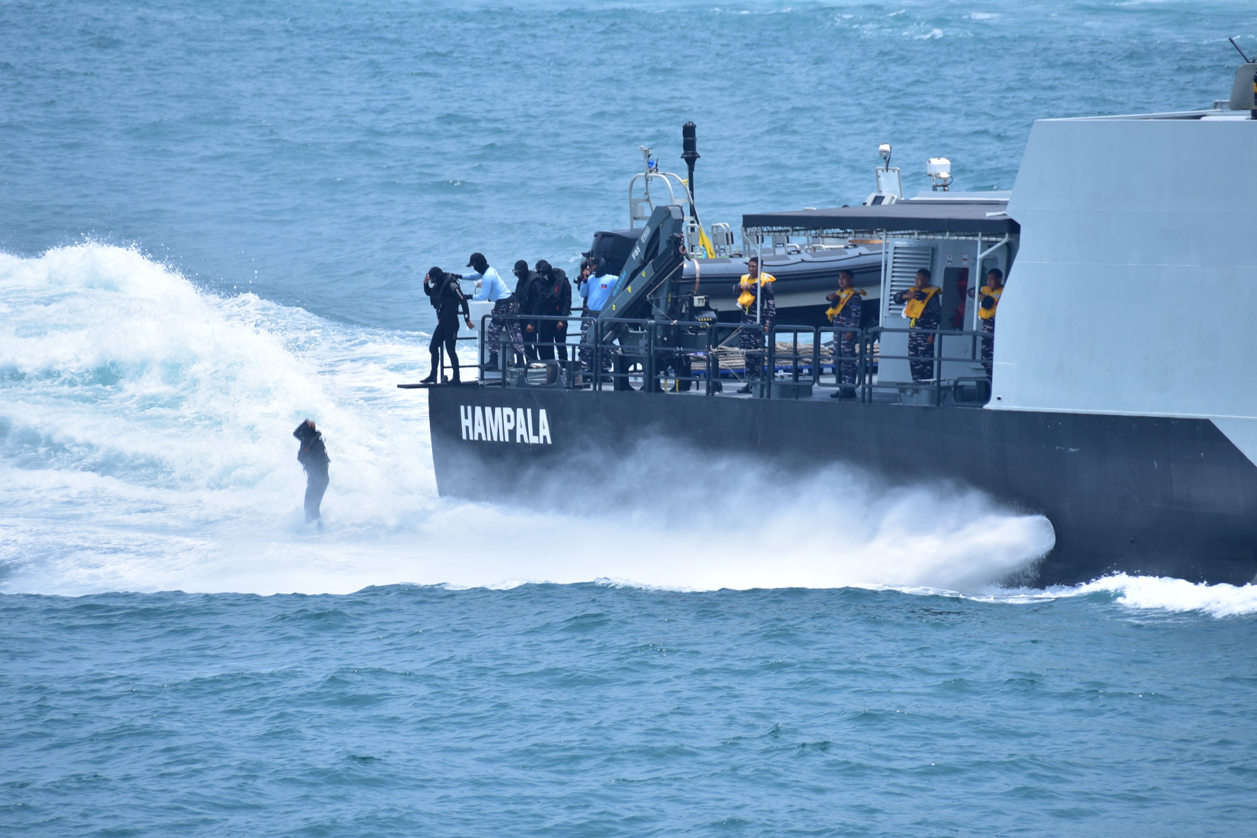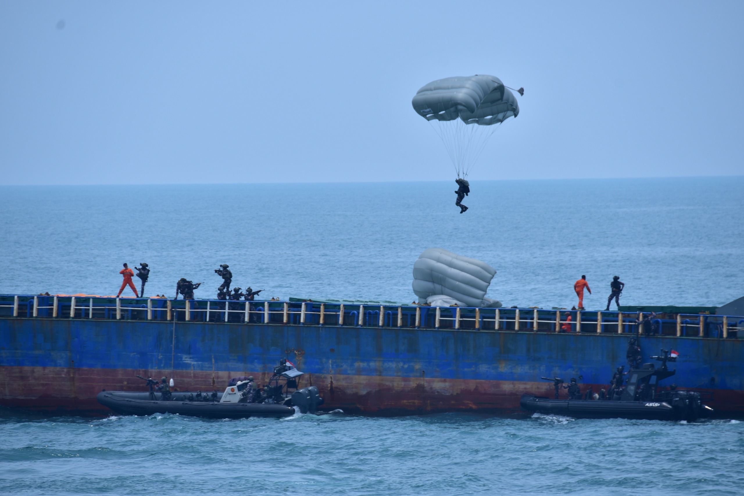 Kegiatan geladi bersih diselenggarakan di gladak Helli KRI dr. Radjiman Wedyodiningrat-992, Komando Lintas Laut Militer (Kolinlamil), dan perairan teluk Jakarta, Jakarta Utara, Senin (29/9/2025).