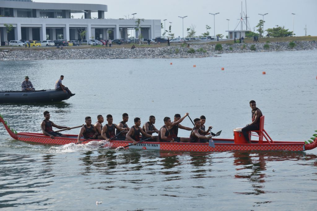 Di tengah ombak Pantai Losari yang menantang dan hembusan angin laut yang kencang, para prajurit Marinir Pasmar 3 menunjukkan performa terbaiknya dengan dayungan kompak, ritme terukur, serta semangat juang tinggi hingga garis finis.