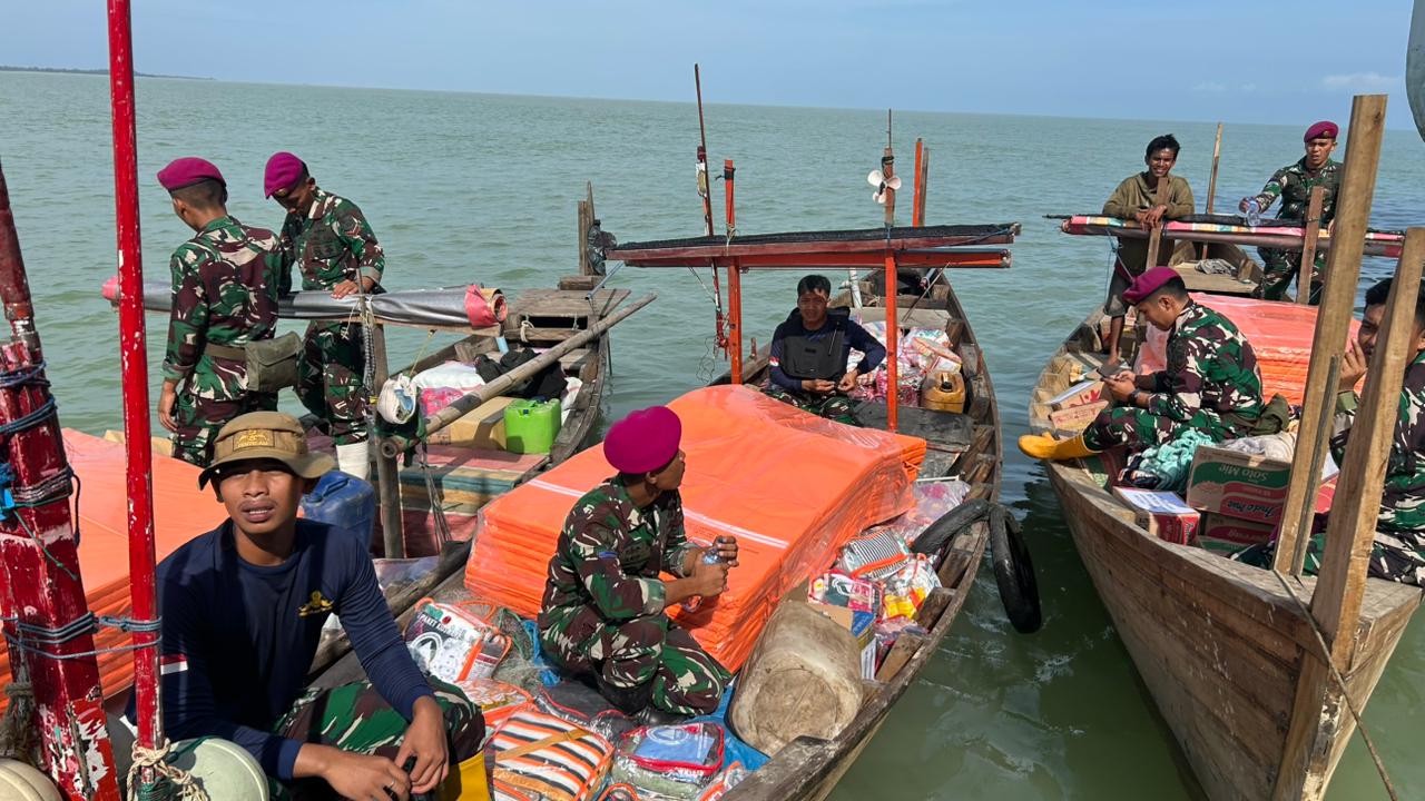 VIA KAPAL NELAYAN, PRAJURIT MARINIR SALURKAN LOGISTIK, TEMBUS DAERAH TERISOLIR DI ACEH TAMIANG