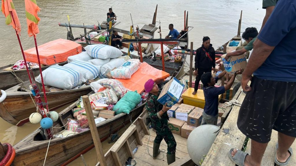 VIA KAPAL NELAYAN, PRAJURIT MARINIR SALURKAN LOGISTIK, TEMBUS DAERAH TERISOLIR DI ACEH TAMIANG